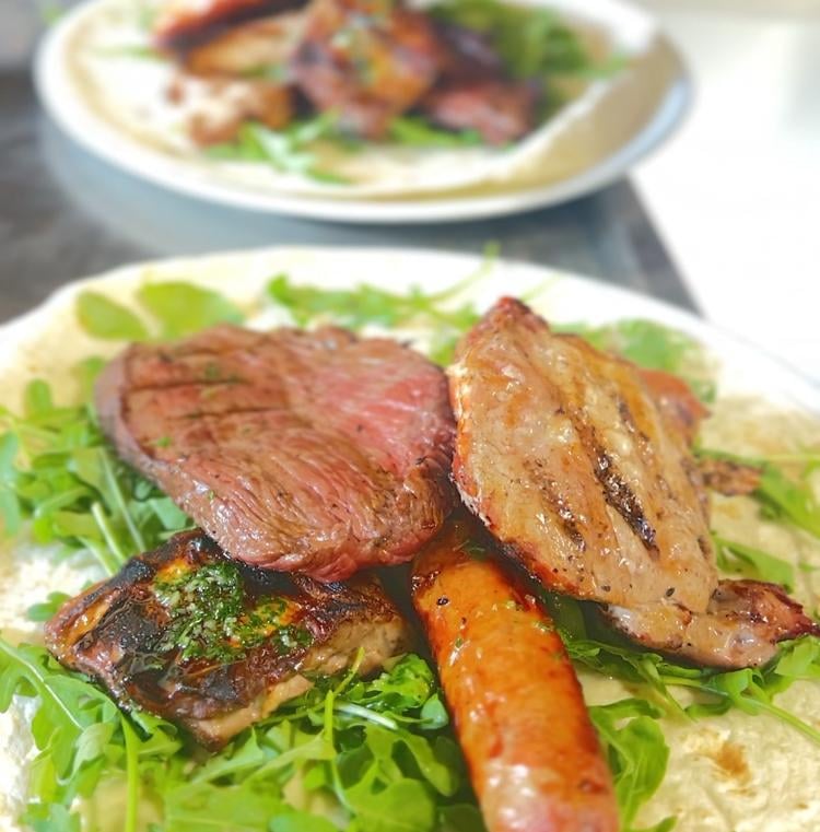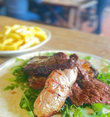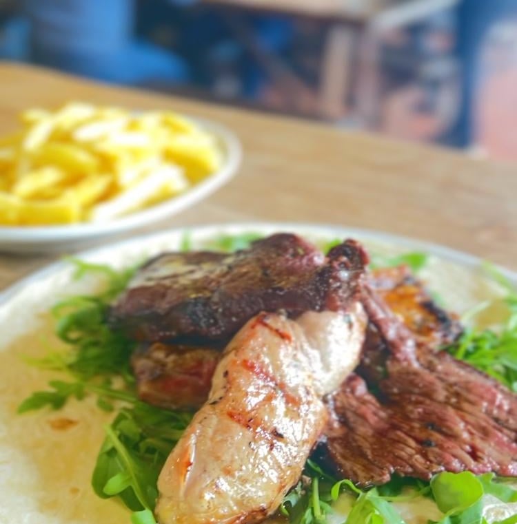 Il nostro menù comprende carne, pollo e insalate, patatine fritte e pizza. Tutto è preparato con ingredienti freschi.